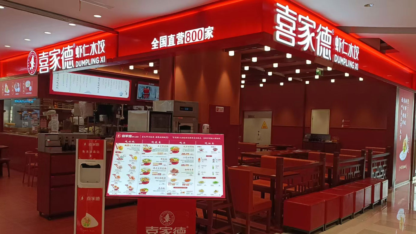喜家德主打纯手工现包水饺,招牌包括虾三鲜水饺、西芹鲜肉水饺等,采用排酸冷鲜肉原料确保品质。