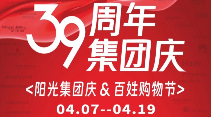 阳光集团39周年庆火热开启! 4月10日-19日,满额即抽好礼,100台海信棉花糖Ultra全家筒三筒洗衣机等您拿!更有“集团庆早鸟预售狂欢”集团级大场直播、抖音话题挑战赛等你来!